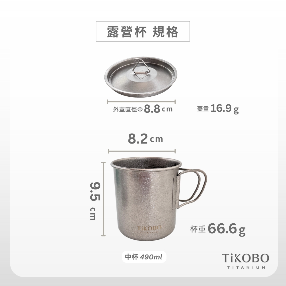 ➋ TiKOBO 純鈦單層露營杯490ml x 1入